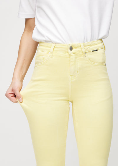 With Perfect Jeans - Skinny - Lemonades, you get the perfect yellow skinny jeans for women, which are stretchy, comfortable, and super soft. Our skinny jeans is our most form-fitting style, fitting snugly from the waist down to the ankles without being tight anywhere. The yellow jeans for ladies are high-waisted and have two deep pockets both in the front and back. Skinny - Lemonades are perfect for you if you need a little color in your everyday life.